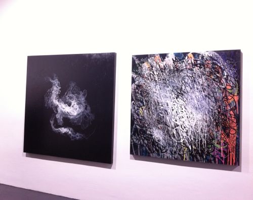 die kunst ist kunterbunt, die sachen sind teilweise sehr gut im markt, wollen aber nicht mit mir nach hause, bis auf ein oder zwei stücke. die stimmung ist brauselig, die besucher strömen hin und her, es sieht alles genauso aus wie im film bei highend-vernissagen, es sind nur etwas zuviele leute da. die halle ist riesengross, über 500m², die stilrichtungen sehr disparat.