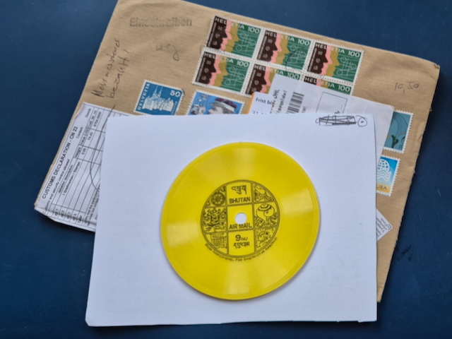 nach nur einer woche lag ein weißer umschlag im briefkasten, darin der alte, zurückgekommene, mit einem sammelsurium an marken beklebt. die briefmarke darin ist schön sonnengelb und deutlich unverlierbarer als die deutschen. für bhutan bin ich inzwischen wahrscheinlich zu alt, das kloster sieht im netz derbe unerreichbar aus, weit oben an einer felswand.