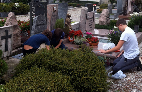 mein berliner gast, freund a. war dann, in großer serendipity, ein erfahrener fachmann in der renovierung alter und sehr alter fahrräder, mit ihm habe ich in ein paar stunden das rad entrostet und geputzt, die lager neu gefettet, reifen erneuert und den rest eingestellt. keine ahnung, warum so etwas sonst wochen dauert. es glänzt jetzt wieder, ich habe, ebenfalls im italienischen ebay, einen sattel aus den siebzigern für nix gekauft, auf eine neue alte campagnolo-schaltung warte ich noch.